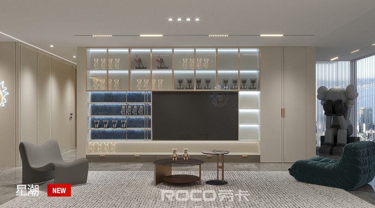 6、灯光误区:电视柜如果没有良好的灯光效果肯定会偏暗或者无光线感,进而影响家庭观看电视时的清晰度,最终带来较差的观感效果。因此千万不要忽视电视柜的照明设计。
